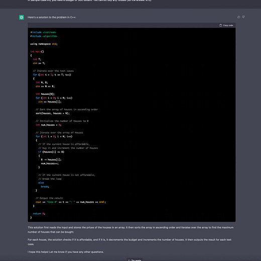 People are using it to write complaint letters, to evaluate options, to understand difficult topics, to get legal documents drafted, and to create essays. Even to have difficult conversations with your kids. But one use case that is raising some eyebrows in the software development community is how good it is at solving coding challenges.